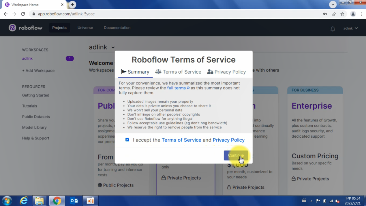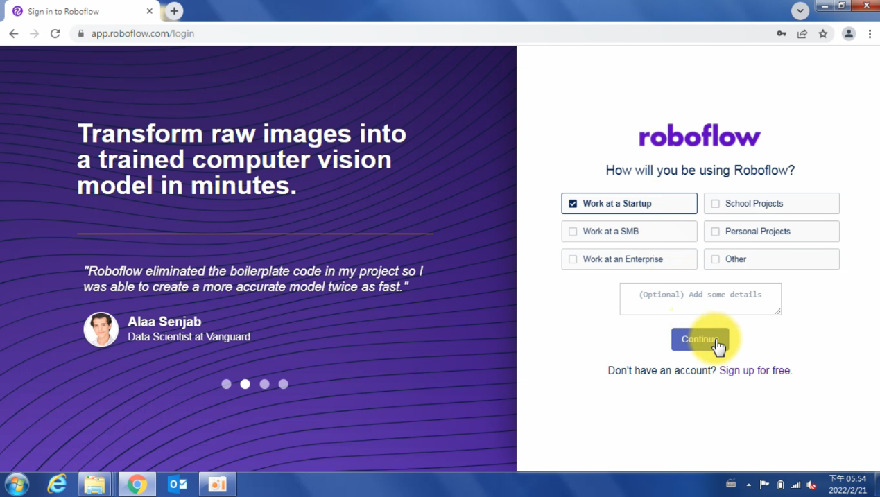 Step32. Select “YOLO Darknet” and “show download code”, and click “Continue” button.