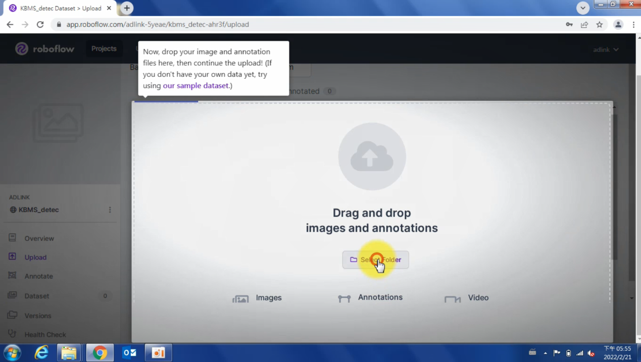 Step12. Click “Select folder” button to select a folder containing the videos or images you want to label.