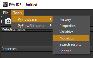 This document introduces the EVA SDK IDE interface including how to generate GStreamer pipelines and how to get admetadata information from ADLINK GStreamer elements. This document does not include information on PyFlowBase features. For more details about the PyFlowBase, refer to https://pyflow.readthedocs.io/en/latest/index.html.