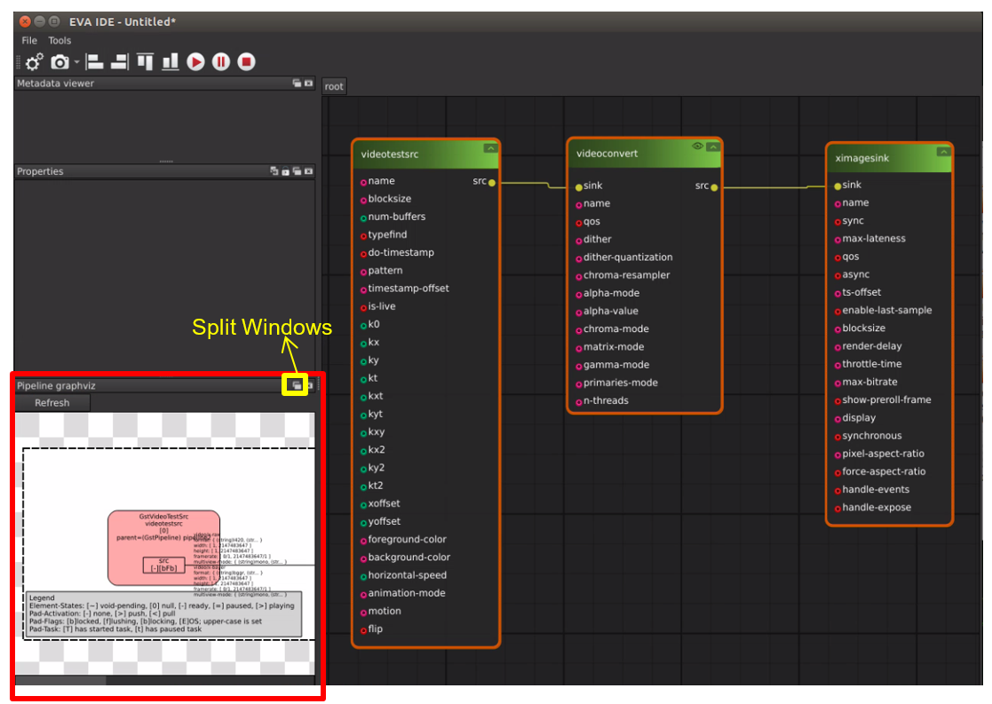 | Pipeline | Use this area to link the elements as a pipeline. |