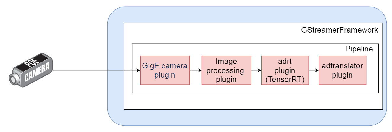 This scenario demonstrates a simple edge AI application. With the configured pipeline, the image inference can be made with a single image source on an ADLINK edge AI platform camera (e.g. Neon).